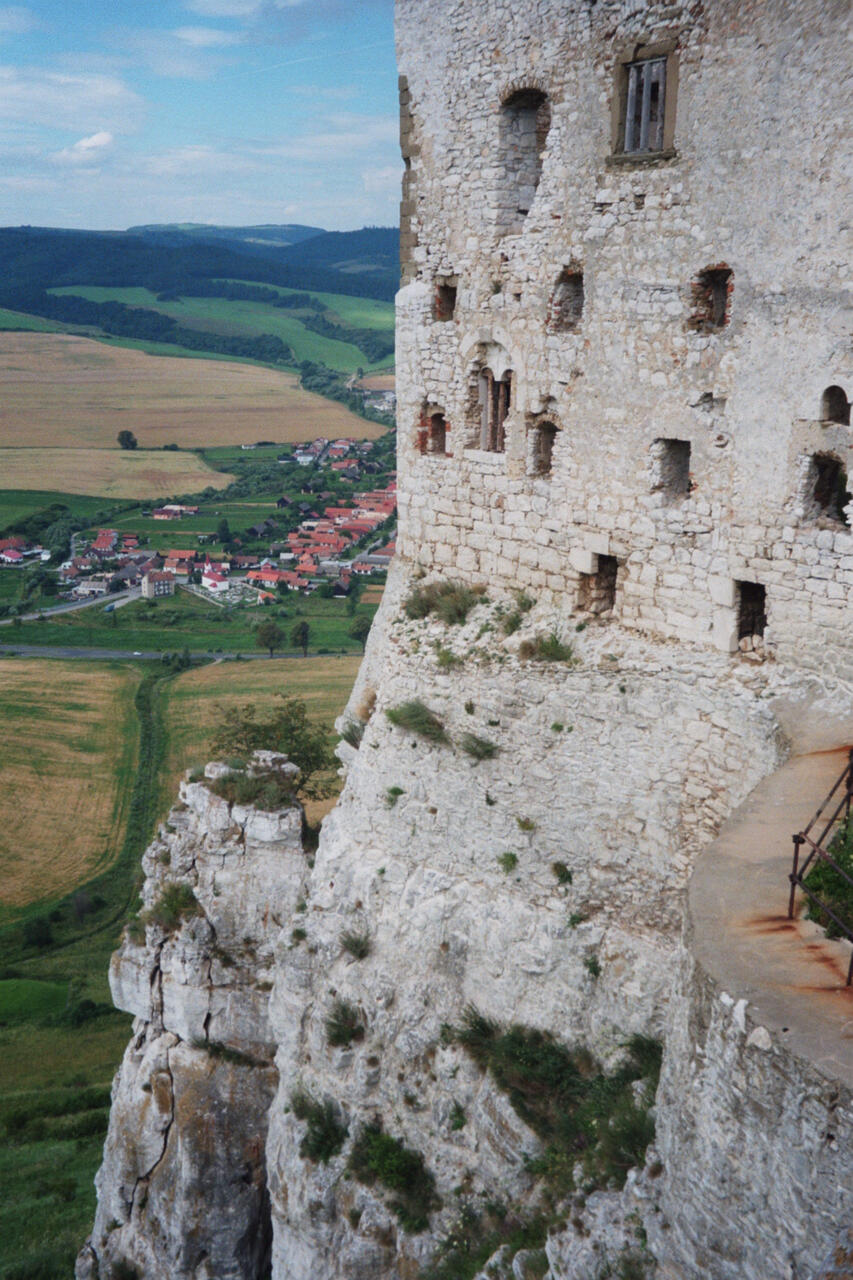 Nach einer guten Stunde Fahrzeit hatten wir dann das Städtchen Spisske Podhradie, unterhalb der Burg gelegen, erreicht. Wir wollten auf dem Parkplatz noch Brotzeit machen, ehe wir hinaufstiegen. Gerade hatten wir die mitgebrachten Salamibrote ausgepackt, als ein ziemlich abgerissener Alter herbeischlurfte und uns schüchtern um die Brote anbettelte. Sowas hatten wir auch noch nicht erlebt. Natürlich gaben wir dem armen Schlucker das Essen. Es machte uns ziemlich betroffen, als wir beobachteten mit welchem Heißhunger er sich darüber hermachte.