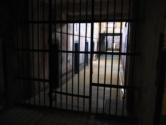 Schließlich stehen wir alle mit leicht zerkratzten Beinen vor dem Eingang. Unsere mickrigen Taschenlampen beleuchten einen breiten, hinabführenden Weg. Unten stoßen wir in ziemlicher Dunkelheit tatsächlich auf den See, sehr schön! Wir sehen eine Plattform, die an eine Pumpstation erinnert und klettern über eine völlig verrostete Metalltreppe, der bereits eine Stufe fehlt. Hätten die Stufen unser Gewicht (natürlich jeder einzeln) nicht gehalten, wäre ein doppelter Beinbruch noch das Best-Case-Scenario gewesen... Richtig leichtsinnig, aber die Neugierde ist eben größer! Überall Rohre, Ventile und ein undefinierbarer, dunkler Schleim, der alles überzieht. Objektiv betrachtet gibt es sonst nicht viel mehr zu sehen, aber uns hat der kleine Abstecher sehr gut gefallen.