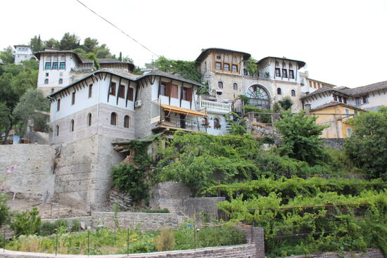 Um zunächst einen Überblick zu erhalten, erklimmen wir den Hügel, auf dem sich die Zitadelle befindet. Bereits beim Weg dorthin kommen wir an pittoresken Häusern vorbei. Berühmtere Beispiele der Stadt sind das Zekate-Haus oder das Skenduli-Haus.