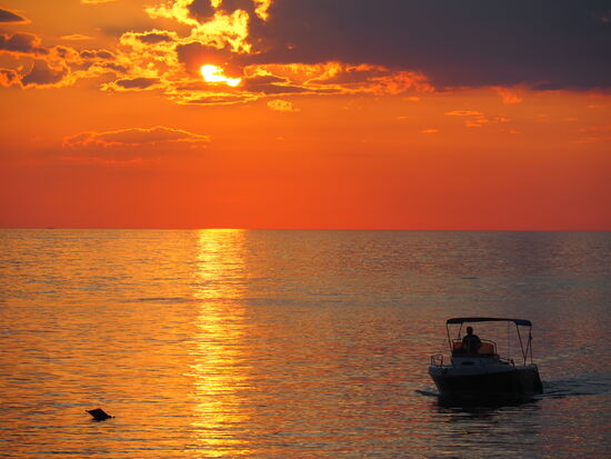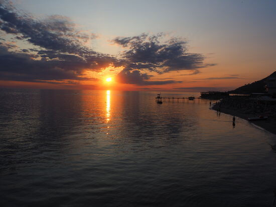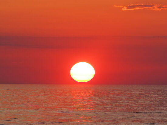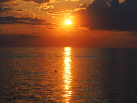 Der Sonnenuntergang hätte zeitlich kaum passender einsetzen können und wir hocken uns - ganz romantisch unter sechs Männern - ans Meer. Zusammen mit vielen anderen Menschen werden wir Zeugen dieses Naturschauspiels.