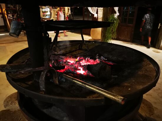 Das halbe Schwein ist voll mit Kräutern im Bauch - schmeckt bestimmt - aber ich sehe später die Portionen auf den Tellern anderer Gäste und bin froh, dass ich das nicht geordert habe, ich hätte mehrere Tage nur noch Schwein essen müssen ...