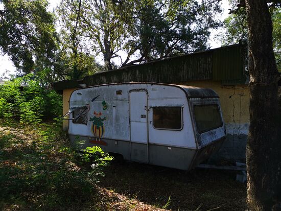 Sehr verwundert sehe ich, dass zwischen diesem ganzen Verfall - meist Richtung Meer - einige sehr aufwändig umbaute Mobilhomes stehen. Ich frage eine Frau, was es mit dem Gelände auf sich hat. Das sei eine sehr lange und komplexe Geschichte, meint sie.