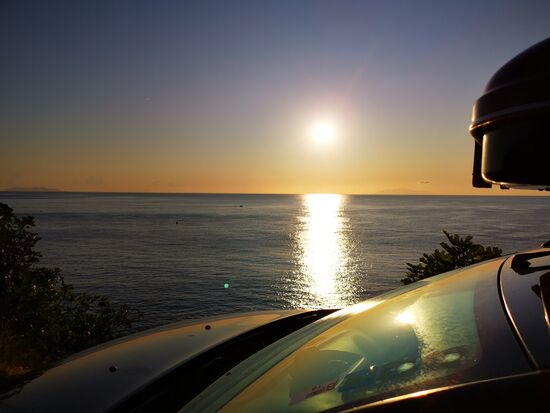 Aus Bastia raus, Richtung Norden, ganz einfach: nur auf der Straße bleiben und das Meer links. Sehr oft muss ich anhalten, zu schön ist der Anblick der Küste in der Morgensonne.