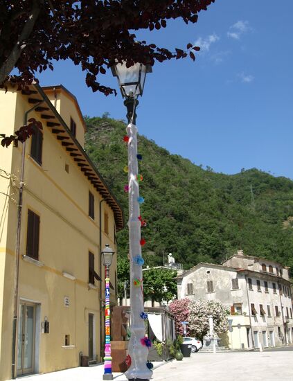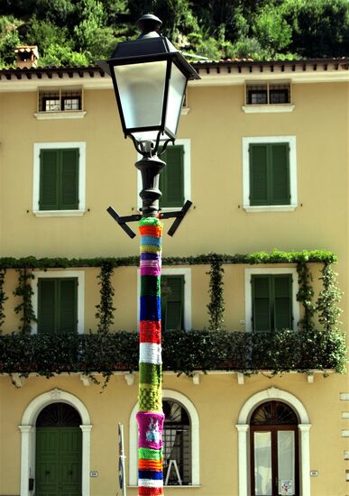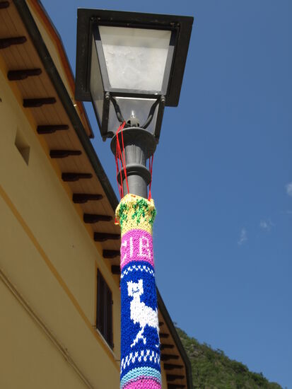 Das Schlafen und wahrscheinlich auch die Kräutertees haben geholfen: Urban ist wieder in der Senkrechten! Und findet den Tee ab sofort scheußlich. So nett es auch ist, ganz im eigenen Rhythmus zu agieren – zu zweit ist es doch schöner! Wir fahren nach Seravezza runter und frühstücken italienisch im schönsten Café vor Ort. Dort rüstet man sich zu festlichen Aktivitäten: Allem, was aus dem Boden ragt, wird für das Kunstfestival „Cib-Art“ ein Strickmäntelchen verpasst. An den nächsten Wochenenden wird es auf den Straßen Ausstellungen und Musik geben; am Donnerstag fängt das Blues-Festival an. Zumindest die Eröffnung wollen wir besuchen, da wir ja kommenden Samstag verplant sind und die Woche darauf schon wieder abreisen. Der Ort tut uns auch dieses Jahr wieder gut – es gibt auf eine entspannte und unaufgeregte Weise viel zu sehen.
