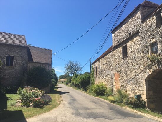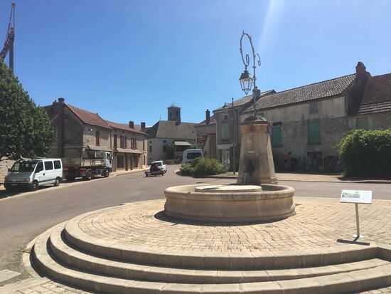 Ein großer Vorteil mit ihr zu fahren ist, dass sie uns mithilfe ihres GPS-Gerätes über kleine französische Landstraßen durch das Burgund lotst. Es ist schon etwas komplett anderes, auf gut ausgeschilderten Radwegen entlang der Gewässer zu fahren oder etwas abseits das Hinterland auf eigene Faust zu erkunden. Und sie fährt überlegt und konstant ihr Tempo und hilft mir somit auch, die Pausen, die Blicke und die Atmosphäre zu genießen. Wir passieren kleine idyllische Ortschaften wie Laives oder Chalot. In Prayes einer hübschen Ansiedelung pausieren wir unter einem riesigen Baum.