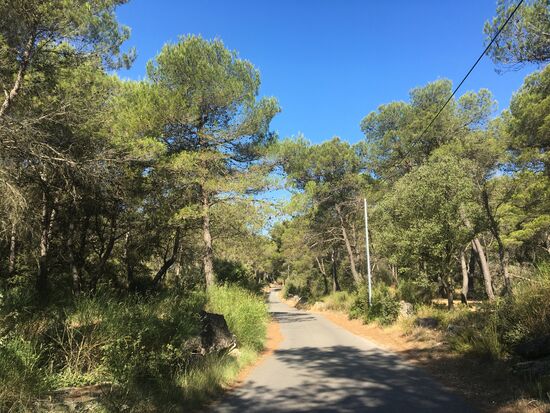 Ich genieße die Ruhe und die ersten Kilometer auf leeren Landstraßen abseits des Eurovelo. Nun muss ich mich auf meine Navigationsapp verlassen. Die Strecke ist zunächst nur wenig spektakulär, doch genau dann fahre ich hinter Cavaillon in die wohltuenden, schattenspendenden Pinienwälder. Ich denke an eine vergangene Fahrt am Atlantik. Zwischen Royan und Arcachon führten die traumhaften Wege teils kilometerlang durch Pinienwald.