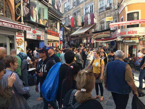 Menschliches Stadtgedränge kann anstrengend sein, gerade wenn man von einer einsamen walisischen Insel stammt oder aber aus einem Ort, wo sich Fuchs und Hase gute Nacht sagen. Doch heute macht das nichts; zu viel lenkt davon ab, wie der Duft von gegrillten Maiskolben und Maronen, das rhytmische Showgeklapper schnurrbärtiger Eisverkäufer, die Vielfalt der Dinge, die sich vor und über den kleinen Geschäften auftürmen, welche die belebten Straßen säumen, die Berge von süßem Bakhlava in den Glastheken und Schaufenstern und die vielen bunten Katzen, die es sich allerwegen bequem machen. Um das Ganze nicht absolut zu romantisieren, müssen an dieser Stelle allerdings auch die vielen bettelnden Kinder erwähnt werden, die am Straßenrand sitzen oder um Restaurantgäste herum streunen und versuchen, päckchenweise Papiertaschentücher zu verkaufen. Dies ist ein wahrlich trauriger Anblick, der das schöne Stadtbild trübt!