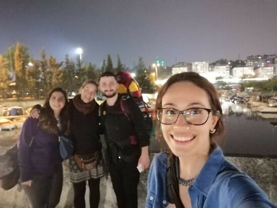 Nach vielleicht anderthalb Stunden verabschiede ich mich, laufe noch etwas herum und mit einem Rucksack, der mir über den Kopf hinaus wächst, einer Gitarre und einer weiteren kleinen Tasche steige schließlich müde in Metro und Bus, die mich in den Stadtteil Avcilar bringen. Das ist ziemlich weit und die Öffis sind proppevoll. Ich habe mir Umsteige- und Zielort in die Handfläche geschrieben, die ich Leuten unter die Nase halte, die mich dann stets freundlich und hilfsbereit in die richtige Richtung leiten oder mir auf die Schulter tippen, wenn ich aussteigen muss.