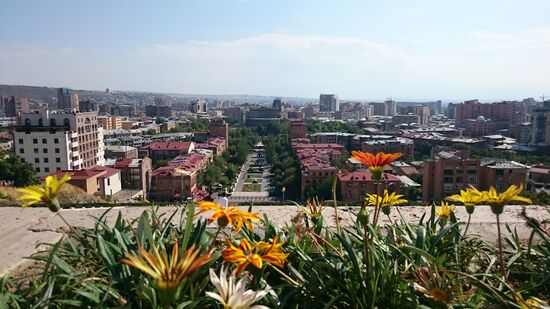 Ich bin am eigentlichen Reiseziel angelangt und schlafe die ersten zwei Nächte auf der Couch von der supernetten Naira, deren Kontakt mir ein vielreisender Freund von daheim vermittelt hat (danke Dominik!!). Sie führt mich am Abend etwas durch Yerevan, Armeniens Hauptstadt. Als Landei bin ich von der Größe, der Hektik und dem Lärm der Stadt wie immer etwas überwältigt, aber mit Naira fühle ich mich gut aufgehoben und sie zeigt mir einige nette Ecken, die ich teilweise alleine nie gefunden hätte. So zum Beispiel das kleine rustikale Dörfchen auf einem Hügel mitten in der Stadt, in dem die Leute in alten Steingebäuden leben, an denen der Zahn der Zeit erbarmungslos nagt und in die die dort Wohnenden leider nicht investieren, weil sie befürchten, eventuell demnächst von dort verscheucht zu werden, weil der Ort nicht ins Stadtbild passt. Allgemein ist es schade, viele alte Häuser der Stadt beim Verfall zuzuschauen, während allerwegen riesige moderne Gebäude aus dem Boden gestampft werden. Obwohl Yerevan eine uralte Stadt ist, ist das älteste Gebäude in der Innenstadt kaum zweihundert Jahre alt. Dennoch hat der Stadtkern durch seine Fassaden aus verschiedenen beige-, violett- und rotschattiertem Vulkangestein ein individuelles Flair.