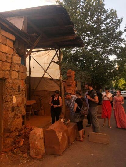 Unterwegs in Yerevans "Dorf" Kond, entlang der Häuser aus vorsowietischer Zeit. Um die Ecke liegt übrigens eine relativ monumentale Gedenkstätte von jemandem von der Mafia, der dort vor Jahren zu Tode gekommen ist und wo die Angehörigen sich nun zum Grillen treffen können. Solche Stätten gibt es in Armenien einige.