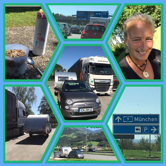 04.15 Uhr am Morgen ... es regnet in Strömen bei 12 Grad! Fühlt sich nicht wie Sommerurlaub an. Die ersten Kilometer... dunkel, nass, Laub auf den Straßen... die Begrenzungen kaum erkennbar und Aquaplaning... bis Leverkusen habe ich nur gedacht: „Dreh um, Kuppel den WoWA ab und fahr ohne Hänger in ein nettes Hotel! In Köln habe ich gedacht... Kauf dir morgen ein zugkräftigeres Auto und fahr dann.... ich hatte vergessen wie bergig das bergische Land ist und dass das Siebengebirge nicht umsonst so heisst... erst ab Limburg wurde es hell und trockener... und der Abenteuergeist kam zurück. Ab Frankfurt sah die Tachonadel öfters mal die 100, ab Würzburg schien die Sonne und ab mittags 33 Grad...mal eben innerhalb Deutschlands vom Herbst in den Hochsommer gefahren.