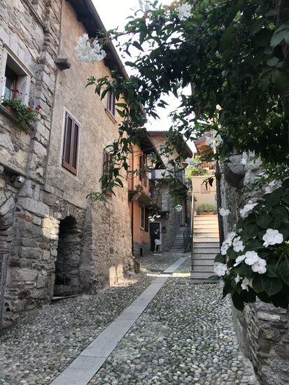 Klein und fein und das historische Zentrum wundervoll restauriert. Man wandelt auf alten Steinpfaden durch alte Häuser, die nicht sicher sind, ob sie noch den alpenländischen oder schon den mediterranen Stil widerspiegeln. Ich hatte das Glück, dieses Dorf und den See fast für mich alleine genießen zu dürfen, bevor ein Reisebus ankam! Kann ich hier vielleicht einheiraten und für immer bleiben?