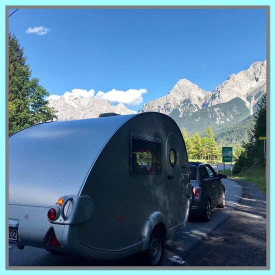Die Fahrt, eigentlich nur 370 km, hat 6 Stunden gedauert. Baustellen und böser Gegenwind am Brenner haben es meinem Gespann schwer gemacht über die Alpen zu kommen. Und drängelnde, hupende LKW‘s haben auch nicht zu einer entspannten Fahrt beigetragen. Die Fahrt über den Fernpass, vor der ich mal wieder regelrecht am zittern war, hat mein kleines Auto dafür mit Bravour gemeistert