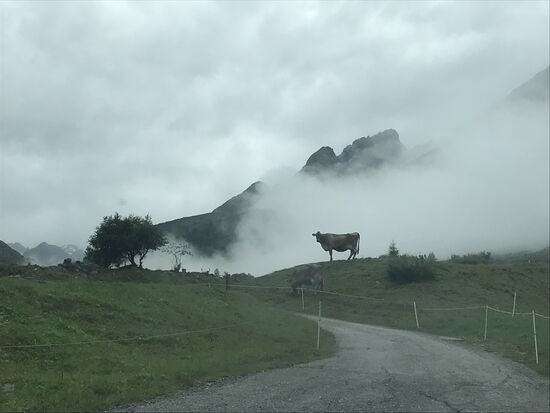 Im Tal musste mich dann noch der Bauer retten... erst standen die Kühe nur im Weg, nachher fanden sie mein kleines Auto wohl so süß, das sie mich eingekesselt hatten und mich wohl als Teil der Herde akzeptiert haben und keinen Millimeter zur Seite gegangen sind.