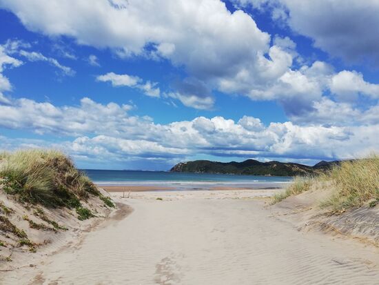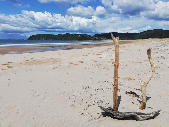 Unser erster Stop lag nur rund 170km östlich und so brauchten wir auch nur etwas über zwei Stunden bis zum Ziel. Die Coromandel Halbinsel ist ein beliebtes Ziel für Wochenendausflüge der Großstädter aus Auckland und deshalb in der Hauptsaison wohl für neuseeländische Verhältnisse recht überlaufen. Allerdings befanden wir uns bereits eher gegen Ende der Sommerurlaubszeit und man merkt schnell, was für einen Neuseeländer "voll" bedeutet, unterscheidet sich doch erheblich von dem, was wir so gewohnt waren.