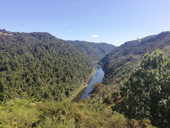 Wie dem auch sei, die Region, die wir auf unserer Fahrt hier passierten, ist wahrscheinlich die wildeste und unzugänglichste der gesamten Nordinsel. Gemäß der Empfehlung unseres Reiseführers bogen wir nämlich irgendwann von der Hauptstraße auf eine kleine alte Talstraße ab - die Whanganui River Road. Hier war richtiges Hinterland! Wir kamen an ein paar Maorisiedlungen vorbei, die auch schon bessere Tage erlebt hatten und schlängelten uns ansonsten auf der kurvenreichen Straße immer weiter nach Süden. Nach knapp der Hälfte des Weges hätte unsere Reise jedoch um ein Haar ein jähes Ende genommen, als wir nämlich auf eine der zahlreichen Brücken fuhren, auf denen man sich mit dem Gegenverkehr eine Spur teilt. Als wir fast auf der anderen Seite angekommen waren, kam ein Auto um die Ecke geschossen und kam erst knapp einen Meter vor uns zum Stehen. Wir waren natürlich ziemlich geschockt und mussten uns erst einmal fangen, aber was uns wirklich auf die Palme gebracht hatte, war die Gleichgültigkeit der beiden Dorfgesichter vor uns. Neuseeländer und Autofahren, keine gute Kombi! So lieb die Menschen hier auch sind, so riskant und unüberlegt verhalten sie sich leider hinter dem Lenkrad. Aber wenn ich immer im Linksverkehr fahren müsste, wär ich wahrscheinlich auch angepisst.