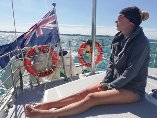 Wir hatten gelesen, dass die einzige Sache, die man hier unbedingt machen muss, ein Segeltörn durch die Bucht ist. Na klar, dachten wir uns. Bei den neuseeländischen Preisen für alles, was nach Touristenbespaßung riecht, ist das bestimmt weit außerhalb unserer Preisklasse. Aber dank der magischen Erfindung namens Internet und der Tatsache, dass wir uns mittlerweile ziemlich spät in der Saison befanden, fanden wir ein Angebot, dass uns gut passte. Also ihr Landratten, lichtet den Anker, setzt die Segel, knutscht die Robbe. Wir stechen in See!