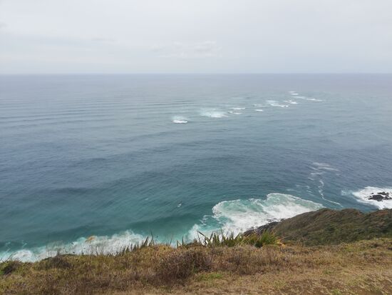 Die letzten Kilometer bis zum nördlichsten Punkt der Hauptinseln Neuseelands standen an. Die Halbinsel reckt sich hier noch einmal gewaltig und so verbrachten wir noch einmal einige Stunden im Auto bis wir endlich das Ende der Welt erreichten: Cape Reinga! Das Kap selber ist nicht wirklich etwas besonderes. Halt ein windiger Felsen hoch über den Meeren. An diesem Punkt treffen sich die Tasmanische See und der offene Südpazifik und angeblich kann man an besonders stürmischen Tagen hier die Strömungen der beiden Meere aufeinander treffen sehen. Ob das nun an dem Tag, an dem wir da waren, auch der Fall war, weiß ich nicht, aber gehöriger Wellengang war auch so.
