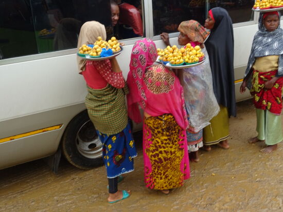 Bis Moshi ist die Landschaft meist durch Buschland geprägt und rechts und links der Straße liegen immer wieder kleine Orte. In Moshi ist für eine Stunde Aufenthalt und die verschiedensten Händler stürmen unseren Bus und wollen Ihre Ware an den Mann bringen. Verkauft wird von Saft, Obst, Kekse, Kopfhörer, Bürsten, Sonnenbrillen einfach alles.