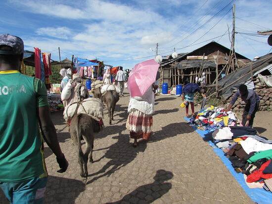Jeden Samstag kommen die Menschen der Region zum Markt um ihre Ware anzubieten und selbst einzukaufen. Unzählige Esel werden voll bepackt an uns vorbei getrieben. Angeboten wird einfach alles - die Bilder sprechen für sich.