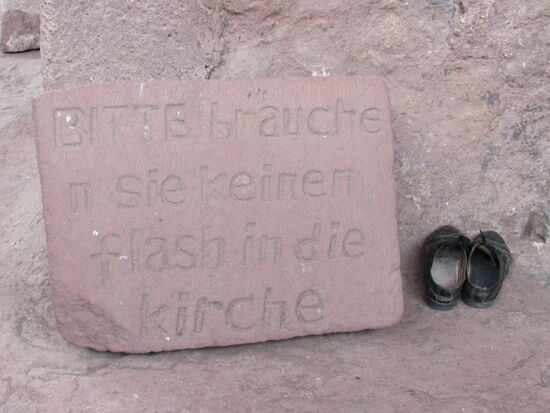 Vor dem Betreten einer Kirche heißt es Schuhe ausziehen, Hut ab und Schultern bedecken.
