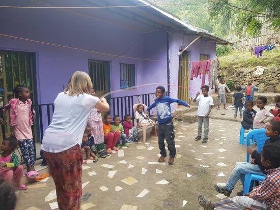 Ich übe mit ihnen das Seilspringen und es ist wieder Foto Shooting angesagt. Die Kinder lieben es fotografiert zu werden.