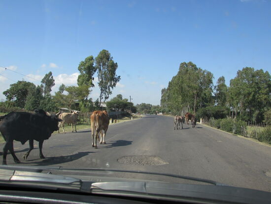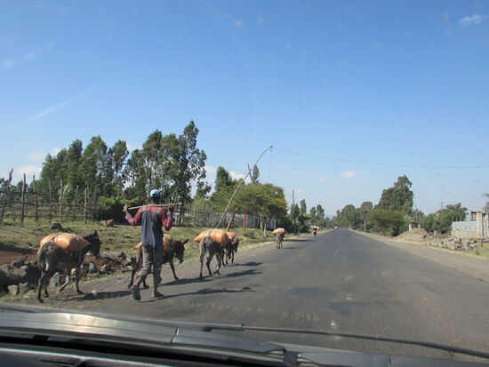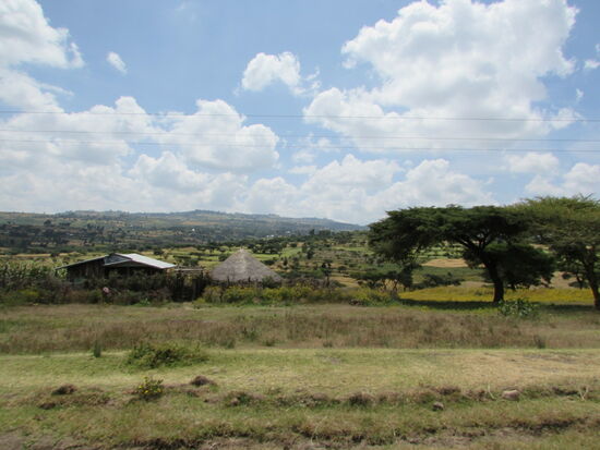 Außerhalb von Addis in südöstlicher Richtung liegt eine hügelige Landschaft mit überwiegend Ackerbau vor uns.