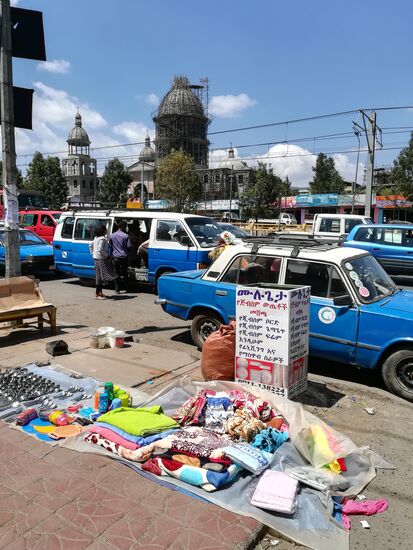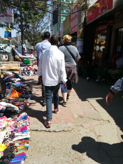 Unsere Koffer und Rucksäcke liegen bereits auf dem Laufband zum durchleuchten, als plötzlich das Band gestoppt wird. Zunächst können wir den Grund dafür nicht erkennen. Doch dann sehen wir wie die drei großen Koffer eines jungen Mannes durchsucht werden. Zum Vorschein kommen einige große Leinenbeutel mit irgendeinem Inhalt. Wenig später sehen wir wie ein Beamter Hände voll Chat Blätter aus dem Koffer holt. Sie waren versteckt zwischen der Aussen Schale des Koffers und dem inneren Stoffbezug. Chat ist eine weitverbreitete Kaudroge in Äthiopien.