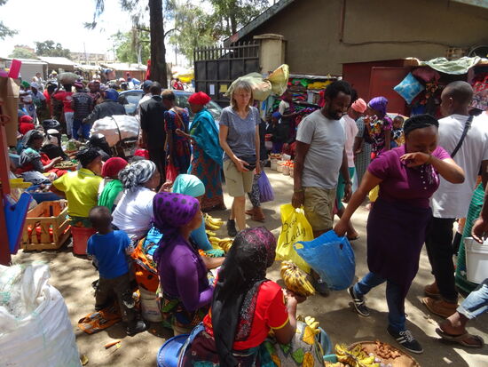 Pünktlich holt uns Mr. Psteen vom Hostel ab. Er ist der Manger von dem Waisenhaus Cradel of Love. Ich habe ihn via Facebook kennengelernt. Begleitet wird er von Lea, sie arbeitet in dem Waisenhaus als Köchin. Heute wollen wir im Namen von unserem Verein Gemeinsam für Kinder der Welt einen Wocheneinkauf tätigen. Wir fahren zunächst zum Markt von Arusha, dann zu einem Farmer, von dort in einen Supermarkt, um schließlich alles in dem Waisenhaus abzugeben. Auf geht's.