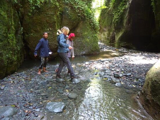 Die Vegetation gleicht einem Dschungel, traumhaft schön. Unten am Fluss angekommen, verfolgen wir dessen Verlauf und müssen ihn auch einige Male überqueren.