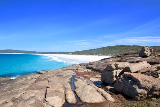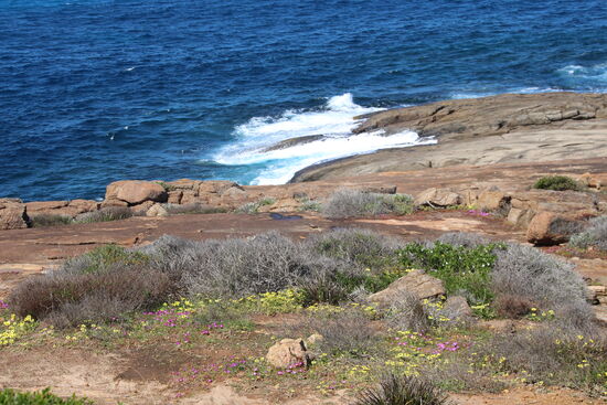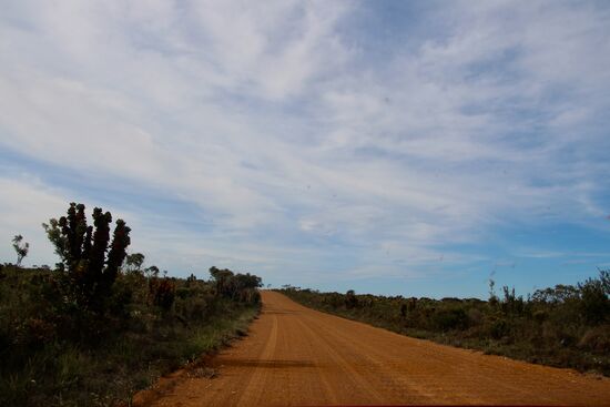 Heute, Montag, 22.09. erreichen wir auf unserer Fahrt entlang der Küste den östlichsten Punkt: Bremer Bay, einen Fischerort. Wir fahren entlang des Fitzgerald River National Parks und sehen den Mt. Barker. Für einen Besuch im Park empfiehlt der Reiseführer „am besten einen Geländewagen“. Wie recht er hat. Der war auf unseren bisherigen Strecken nicht erforderlich und ein solcher Besuch auch nicht konkret vorgesehen, aber wenn man denn schon einmal da ist... Unser Versuch, die unbefestigte Strecke zu meistern schlug fehl. Auf den frisch planierten und gewalzten Abschnitten ging alles gut, unbearbeitete Abschnitte mit fürchterlichen Querrillen zwangen uns jedoch sehr schnell zur Aufgabe (Bild, rechte Straßenseite).