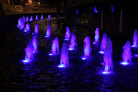 Springbrunnen, die um den Bell Tower herumsprudeln