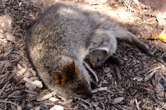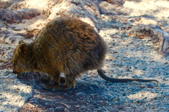 Ein Quokka ist ein Mini-Känguru - etwas größer als eine Katze. Bei ihrer Entdeckung wurden sie zunächst für eine Rattenart gehalten, weshalb die Insel den Namen „Rattennest“ erhielt. Die Wildtiere sind dämmerungsaktiv, zeigen jedoch nahezu keine Scheu vor Menschen. Gerne halten Sie sich unter Sträuchern oder Bäumen im Schatten auf.