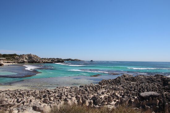 Rottnest Island, eine kleine malerische Insel ca. 20 km vor Fremantle, hat eine stark zerklüftet Küste mit vielen Stränden. Privater Autoverkehr ist nicht erlaubt. Besucher können also nur per Pedes, per Rad oder mit dem Bus die Heimat der Qoukkas erkunden. Eine Fähre ab Fremantle bringt uns hin.