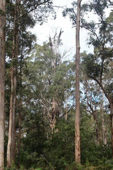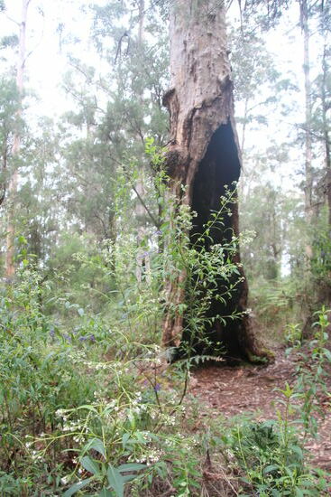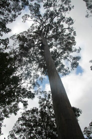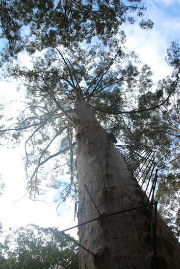 Mittwoch, 19.09.: So - einmal musste er ja kommen, unser erster Regentag. Schon in der Nacht hat es fürchterlich gestürmt und geschüttet. Am Morgen war der Himmel grau und es blies ein kräftiger Wind. Zunächst noch trocken. Wir brechen auf in Richtung Pemperton, dem Herz der Southern Forests und rücken damit ein wenig von der Küste ab. Unser Ziel: der Gloucester National Park mit seinen „Giants“ - und speziell dem Gloucester Tree, einem über 61 m hoher Karribaum (eine Eukalyptus-Art). Speziell dieser Baum kann bestiegen werden und hat in schwindelerregender Höhe einen Fire Lookout.