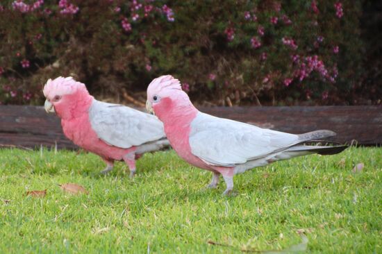 Zurückgekehrt in Walpole überraschen wir diese Galah-Kakadus beim Abendessen.