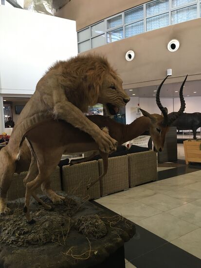 der Ankunftshalle stehen schon einmal zur Einstimmung einige der 'big five'.