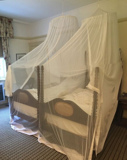 Plüschig-seltsame Relikte des Empire schmücken das altehrwürdige Hotel - Antilopenköpfe an den Wänden, Victoria und ihr Gemahl Albert in Öl, größer als lebensgroß, geblümte Sofas in den Lounges und eine Atmosphäre von Plüsch.