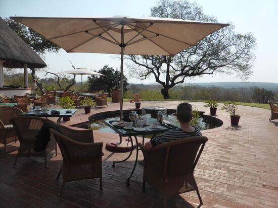 Den legendären Hight-Tea auf der Terrasse können wir wegen unseres dicht gedrängten Programms nicht mitmachen. Doch den Innenhof und die zu den Fällen hin ausgerichtete Terrasse nehmen wir in Augenschein, bevor wir unser Zimmer beziehen. .