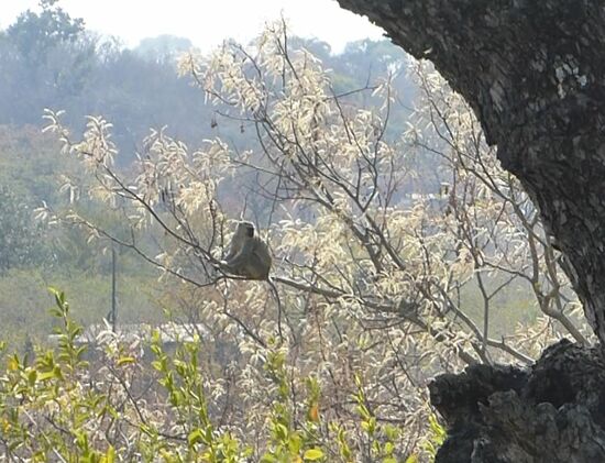 Im Baum vor uns entdeckt Ulrike einen Affen - ebenfalls beim Frühstück.