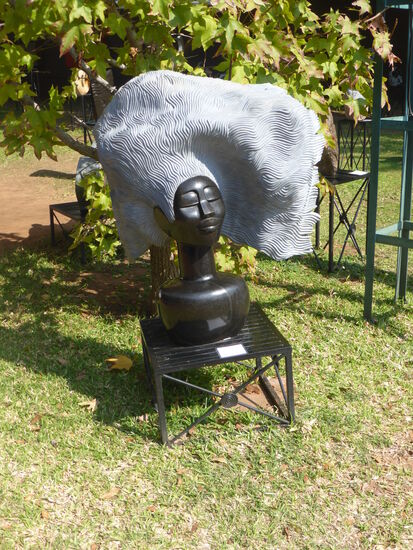 Es wird schon Zeit zum Aufbruch zum Wandern am Rand der Viktoria-Fälle. (siehe übernöchstes Kapitel) Doch bevor wir das Hotel verlassen, schauen wir uns noch die erstaunlichen Skulpturen einer Ausstellung überwiegend aus Speckstein kunst- und geschmackvoll gearbeitet an.