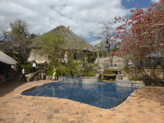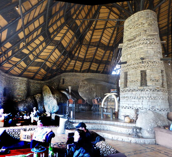 Nach der ausgiebigen Besichtigung findet die notwendige, erholsame Pause in der 'Lodge at the ancient City' statt. Sie ist herrlich gelegen und im Stil der alten Gemäuer errichet. Mich erinnert sie an eine auf an Anhöhe liegende Lodge in Namibia. Wir trinken mit einigen anderen nur etwas (Bier/Tee).