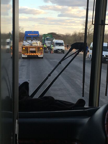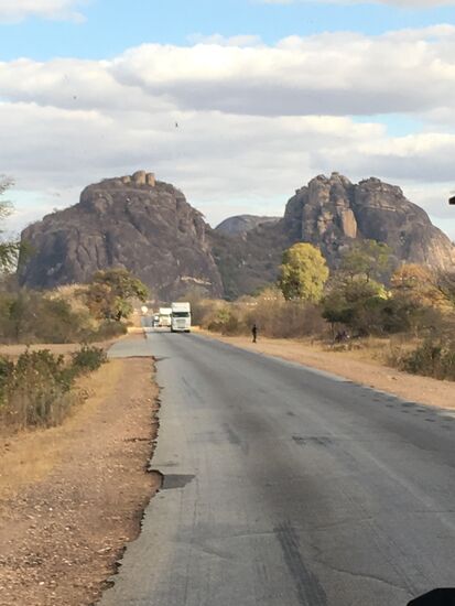 Gegen 15.30 Uhr starten wir dann unsere Rücktour – nach kurzer Fahrt zurück auf der Strasse Nr. 4 geht es über Nvungu (20,78°S / 30,81°O) weiter Richtung Südafrika – wegen des LKW-Verkehrs zw. Simbabwe und Südafrika wird die Nr. 4 immer mehr zur Schlaglochstrasse.