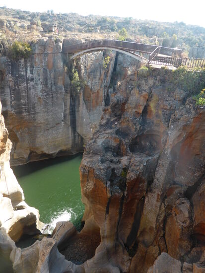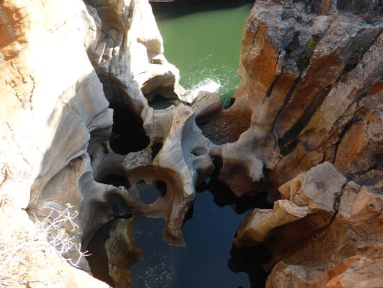 Am Zusammenfluß von Treur und Blyde River hat die Kraft des Wassers faszinierende zylindrische Löcher in den gelben Dolomitstein geschliffen. Die im Wasser mitgeführten Kiesel wirken wie Schleifmaterial und haben die Löcher in Tausenden Jahren geschaffen. Es gibt hier inzwischen einen riesigen Parkplatz und einen Rundweg, auf dem man immer neue Blickwinkel vorfindet. Den besten Blick hat man aber von einer der beiden Brücken , welche über den Fluß führen.