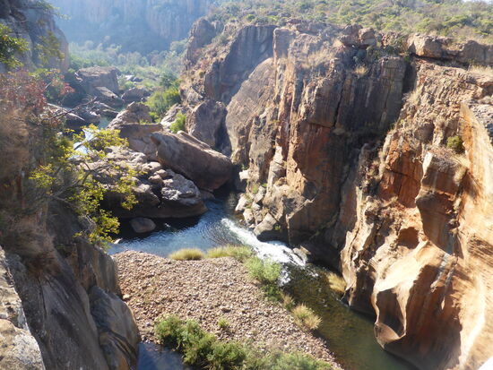 Unseren ersten Stop machen wir den an den Bourke´s Luck Potholes bei Moremela, die - wie ich mich erinnern kann -1980 noch mit tobendem Wasser gefüllt waren. Heute liegen sie z.T. nach einer langen Trockenperiode weitgehend trocken.