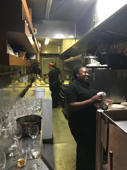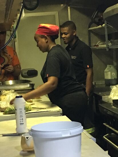 Außerdem nutzen wir die Gelegenheit mit dem Einverständnis des Küchenchefs ein Blick in die Küche unseres African Explorers zu werfen. Es ist schon erstaunlich in welcher Enge die Küchenmannschaft 63 Personen mit einem Dreigängemenu verwöhnen kann.