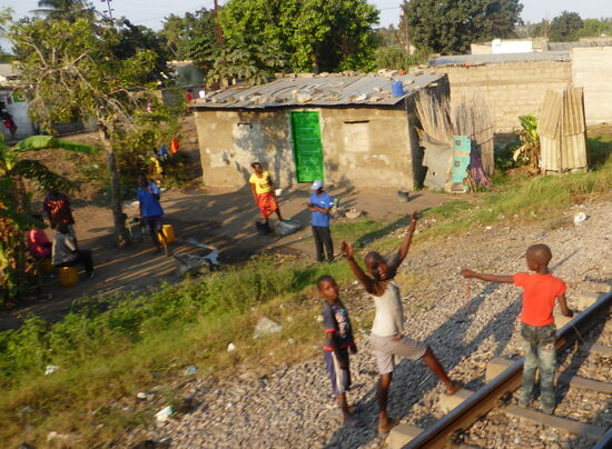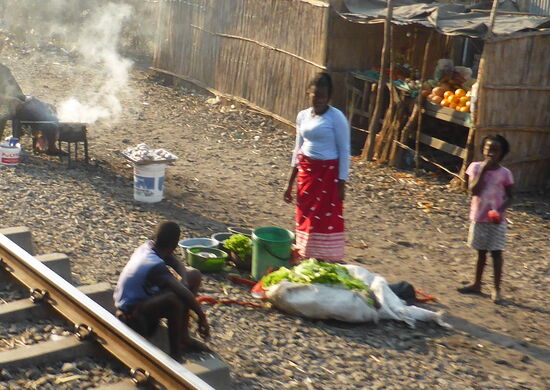Nachdem sich der Zug dann in Bewegung gesetzt hat, erhalten wir den Hinweis des Chef-Reiseleiters, aus Sicherheitgründen für die bettelnden Jugendlichen nichts aus dem Fenster zu werfen, da bereits Unfälle passiert seien durch Gerangel auf den Schienen. - Wir schauen uns dies aus den Fenstern dann an und sind doch recht schockiert ob der gravierenden Gegensätze zu heute Mittag.