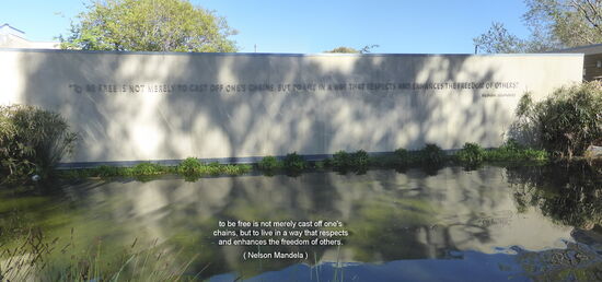 In der Misty Lodge haben wir nicht besonders geschlafen; Ulrike hat inzwischen von der eiskalten Pirschfahrt um 6.00 Uhr vor ein paar Tagen den Husten, und ich habe wenig Schlaf. Um 6:15 Uhr klingelt der Wecker, wir packen soweit wir können alles zusammen und machen die Koffer fertig, die um 7:30 Uhr abgeholt werden. Zum Frühstück geht es ins Summerhouse, um 8:30 identifizieren wir unsere Koffer und los geht es heute mit einem anderen Bus. Vorgesehen ist das Apartheitmuseum und in Soweto das Nelson Mandela Haus.