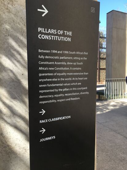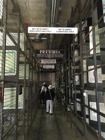 Die sehr informativen Texte der schwarzen Tafeln geben einen guten Einblick in die Geschichte der Apartheit und leiten den Besucher durch das Museum in einer Ein-Stunden-Tour. Weiße Tafel geben Zusatzinformationen.
