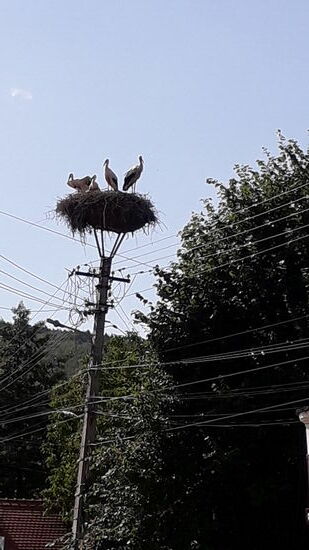 Unterwegs hielten wir in Cristian. Dort war auf fast jedem Mast ein voll besetztes Storchennest. Traumhaft!